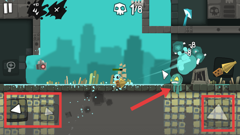 3、击败怪物后,后续关卡会碰到炮塔,需要站在炮塔攻击不到的地方进行输出将其消灭。