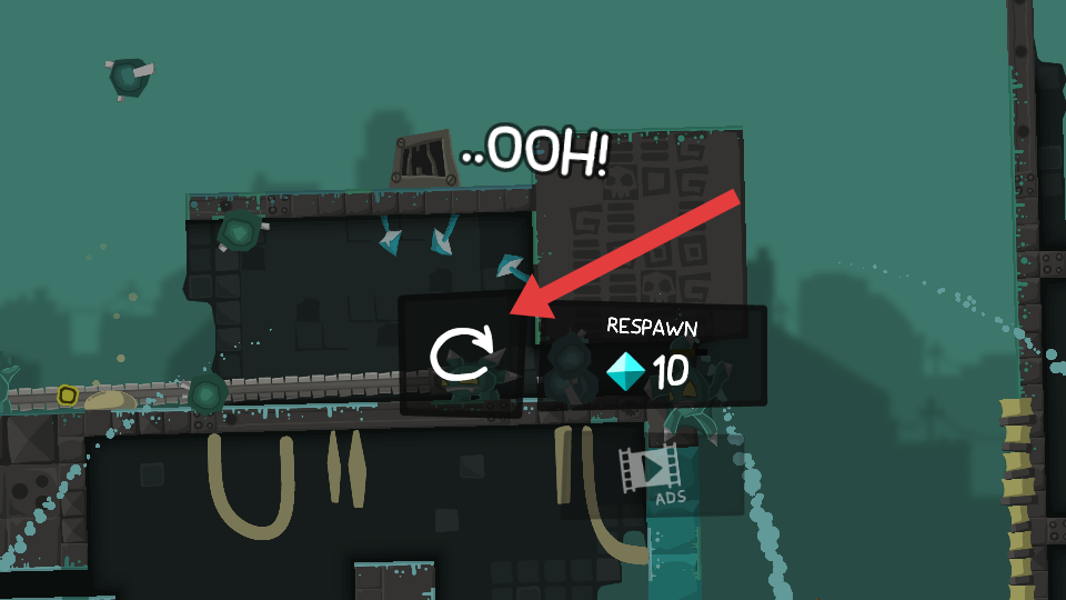 4、若角色死亡,出现【RESPAWN】提示后,点击箭头【重来按键】重新进行挑战。