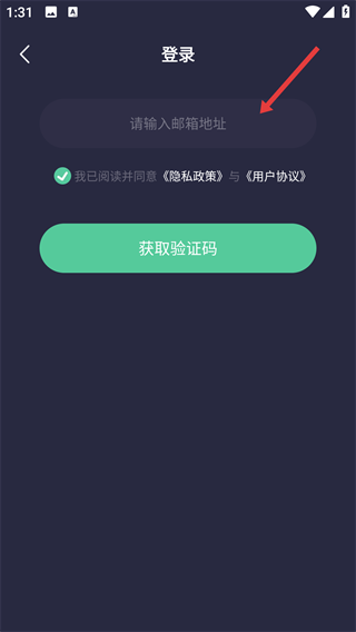 4、在邮箱登录页面,输入邮箱地址,点击“获取验证码”完成后续登录流程。