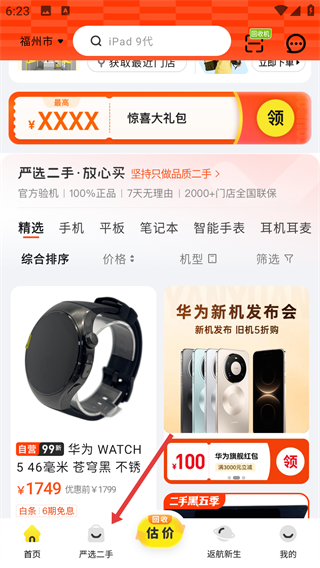 3、选择“严选二手”,查看可购买的二手商品内容。