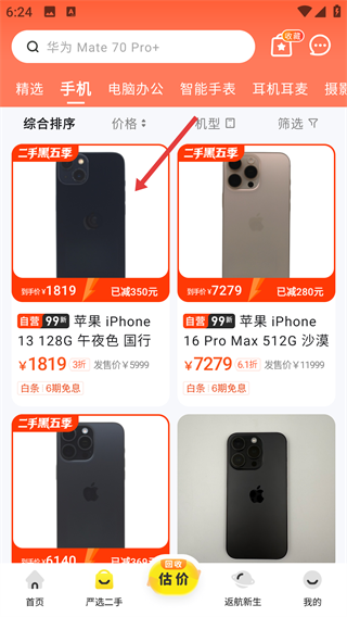 3、接着可看到多款二手手机,比如【苹果iPhone13】等,点击进入购买界面。