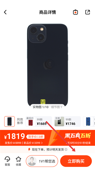 4、进入购买页后,确认好信息就点击【立即购买】,即可下单入手该二手手机啦。