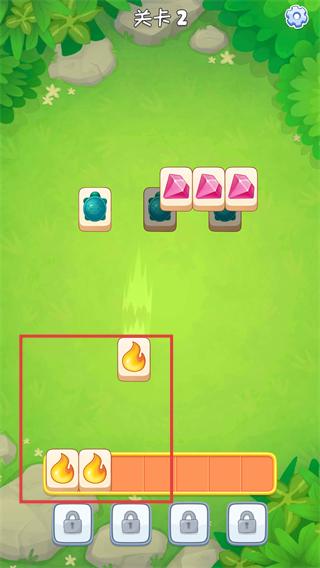 2、继续将上方的同类道具(火焰、宝石),对应移动到下方槽位的相同道具旁,完成分类。