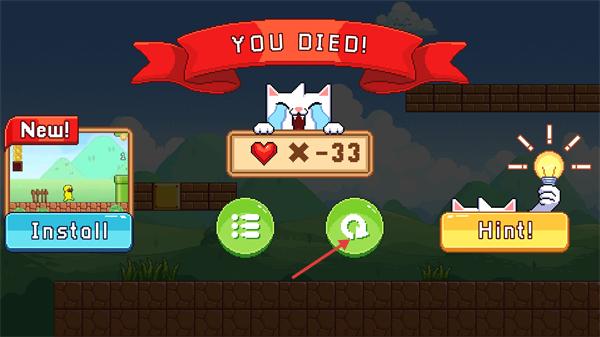 4、若出现【YOU-DIED!】界面,点击绿色重置按钮重新挑战,避开陷阱类道具保障生存。