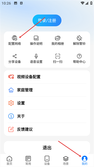 1、在“我的”页面,点击【配置网络】选项。