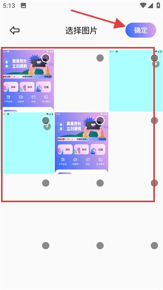 2、在【选择图片】页,选中目标图片后,点击右上角【确定】按钮进入编辑页。