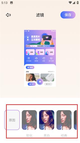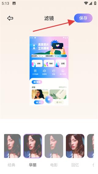 4、选好滤镜效果后,点击右上角【保存】按钮,完成图片的滤镜编辑操作。