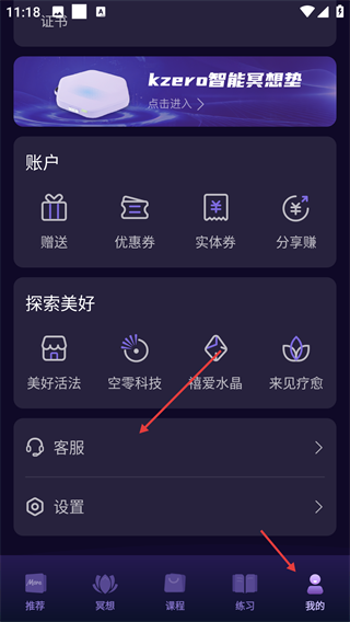 4、来到下方菜单栏中的“冥想家”板块中,可以购买冥想相关的周边,还能够查看购物车和订单。