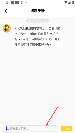 4、在输入框填写需反馈的内容,再点击【发送】按钮提交反馈信息。
