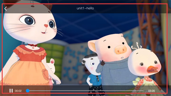 4、点击单元后即可进入动画播放界面,【unit1-hello】动画时长为3分20秒,可通过动画沉浸式学习幼儿英语内容。
