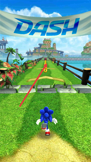 1、控制索尼克沿赛道奔跑,留意出现的金币。