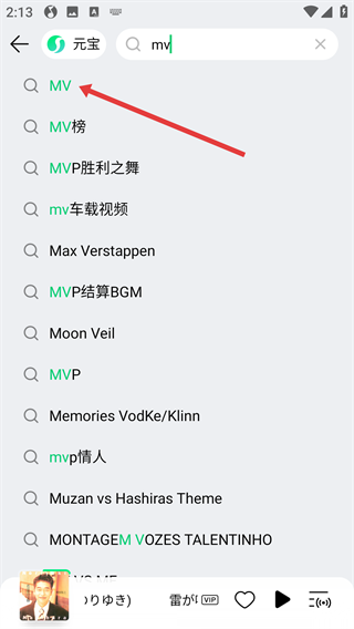 2、在搜索栏输入【mv】,选择搜索建议里的【MV】选项呀。