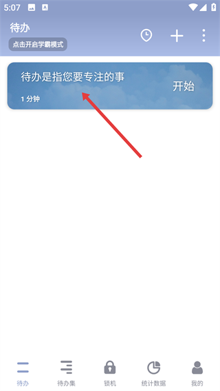 1、打开番茄ToDo后,在【待办】界面点击左上角的【点击开启学霸模式】
