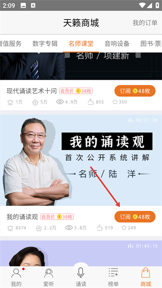 2、进入商城页面,在名师课堂专题,想要订阅的课程。