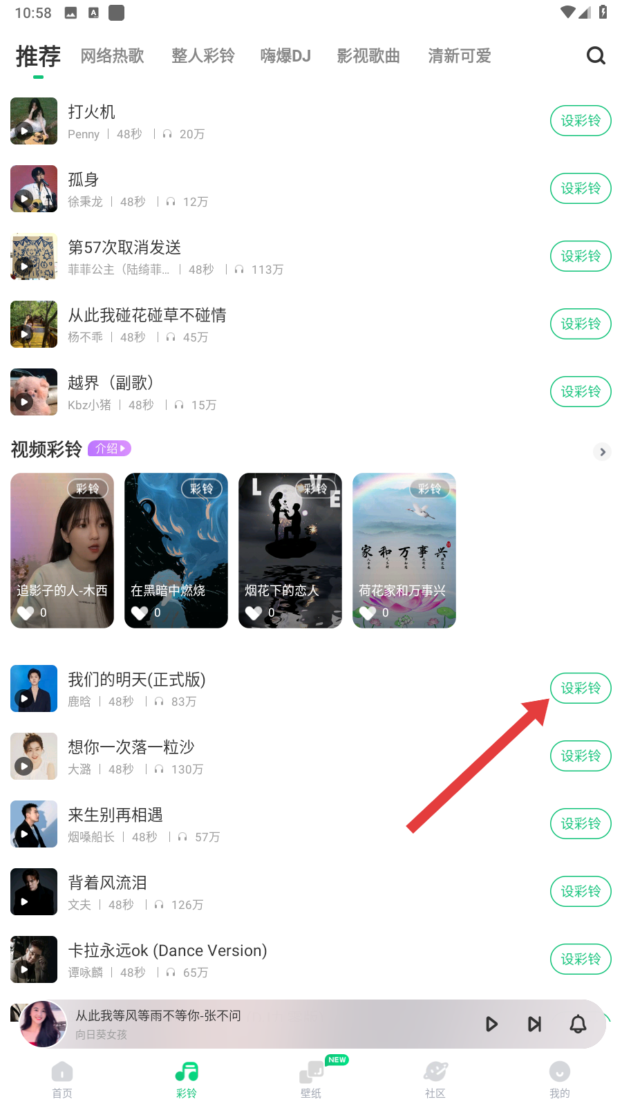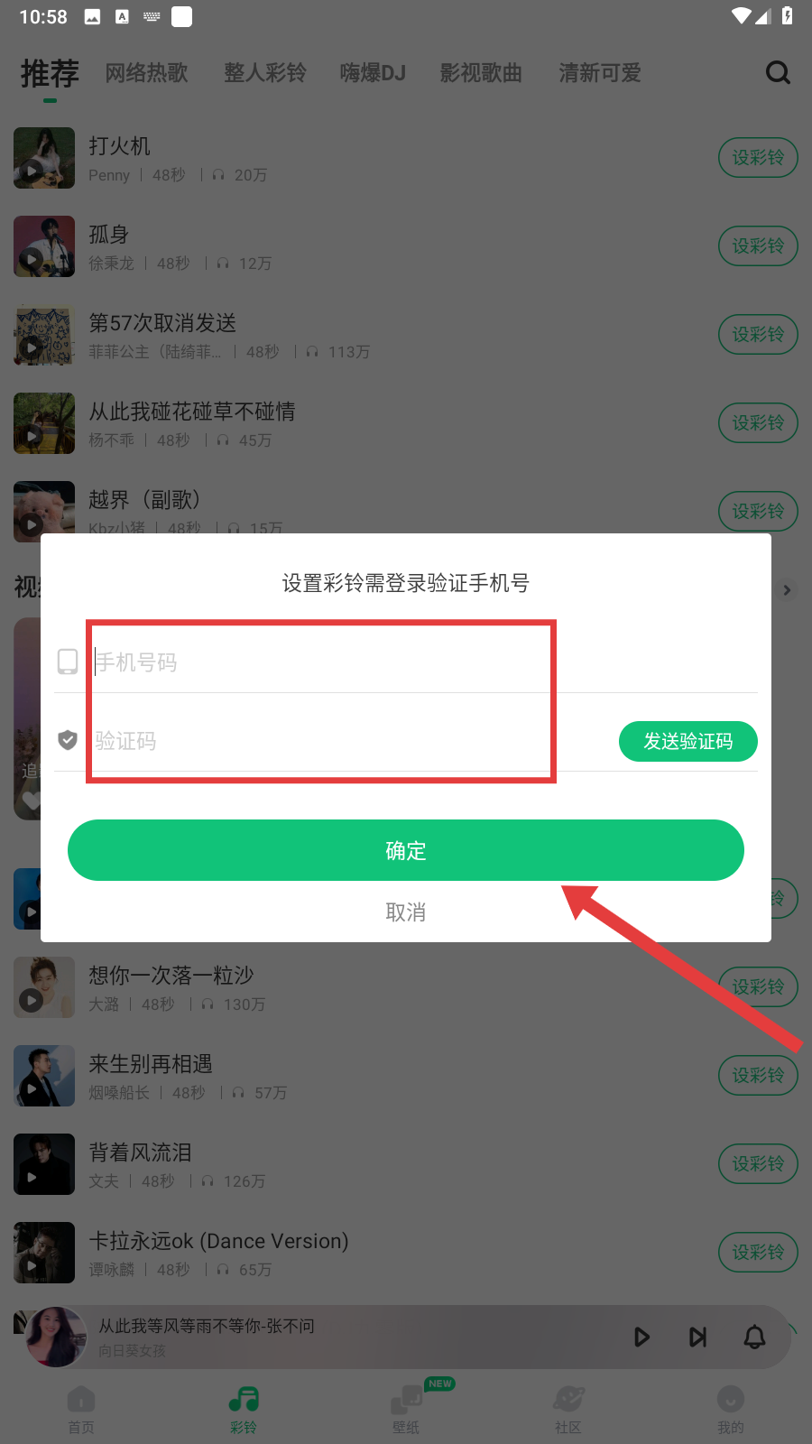 2、在彩铃页面,找到偏好的彩铃,点击右侧【设彩铃】按钮,触发登录验证弹窗哦。