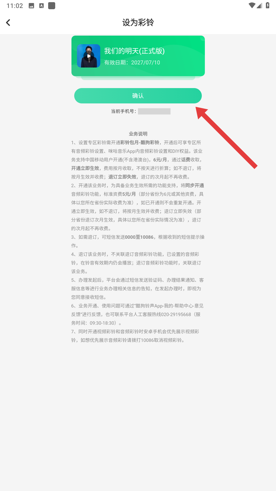 4、验证完成后,在设为彩铃页面点击【确认】,即可成功设置该彩铃啦。