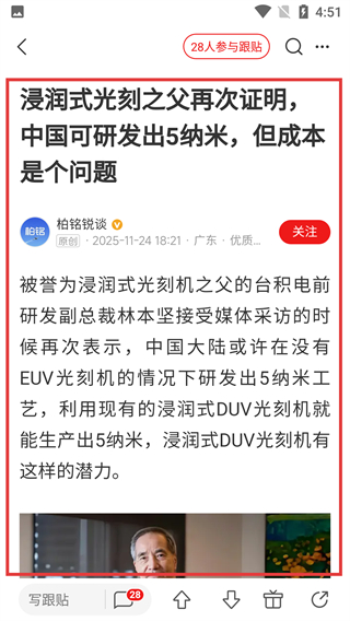 4、在文章详情页,可阅读文章内容,还能参与跟贴互动,查看已有跟贴内容或发布自己的跟贴。