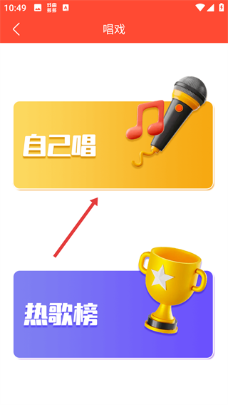 2、进入唱戏板块后,点击【自己唱】,即可进入戏曲选曲界面,挑选心仪的戏曲曲目啦。