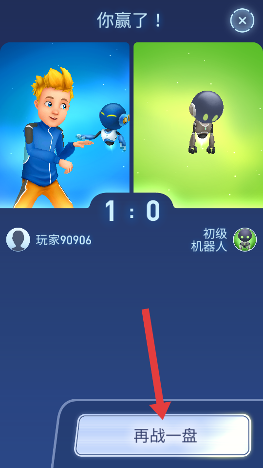 4、当出现【你赢了!】提示后,点击【再战一盘】按钮,开启新对局。