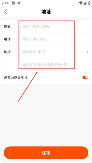 4、填写完地址信息后,点击底部的【保存】按钮,完成地址的添加操作。