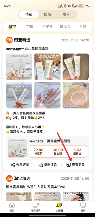 2、之后可以浏览【淘宝】、【京东】等平台的精选商品,看到心仪好物后,点击【查看商品】就能了解详情啦。