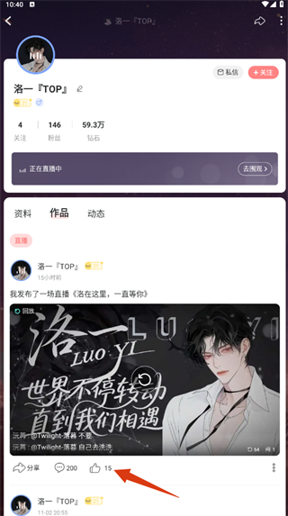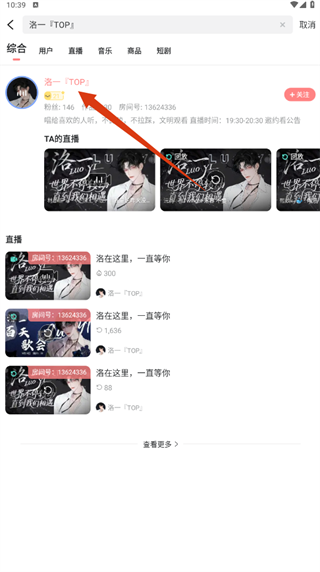 3、搜索后找到用户【洛一TOP】,点击进入其主页,就能浏览他的作品啦。