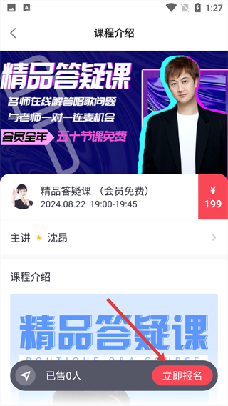 4、点击【立即报名】按钮,完成该直播课程的报名操作。