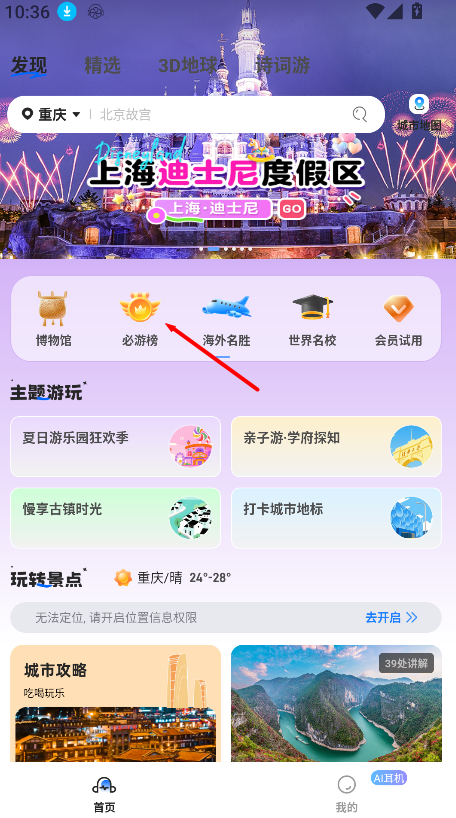 3、城市攻略页面中找到“必游榜”板块,点击查看热门景点列表。