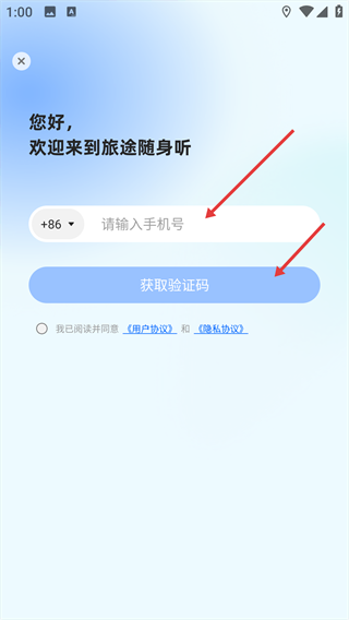 3、进入登录界面,先在输入框中填写手机号,再点击【获取验证码】按钮。