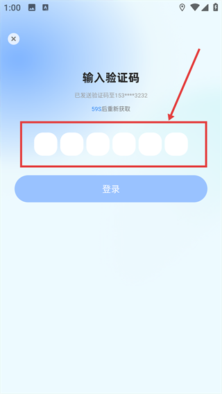 4、在输入框中填写收到的验证码,点击【登录】按钮,完成账号登录操作。