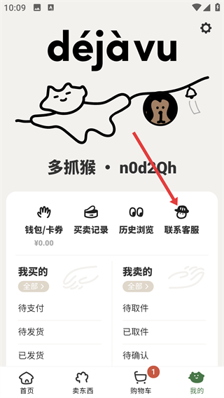 2、进入【我的页面】后,我们选择按【联系客服】选项哦。