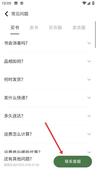 3、进入【常见问题】页,点击底部的【联系客服】按钮,接着操作哦。