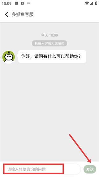 4、最后进入【多抓鱼客服】页,在输入框填问题后点【发送】即可。