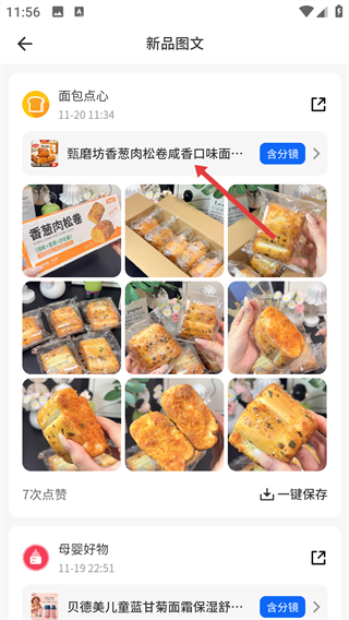 3、进入【新品图文】后,选择含分镜的商品,如【甄磨坊香葱肉松卷】,为创作做准备呀。