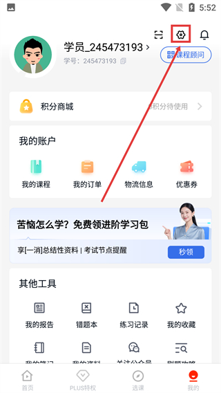 2、进入个人中心后,点击右上角【设置】图标,可进入设置页面。