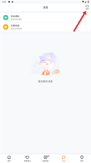 2、在消息页面,点击右上角【客服】,进入客服相关界面,距离找到联系方式又近了一步呢。
