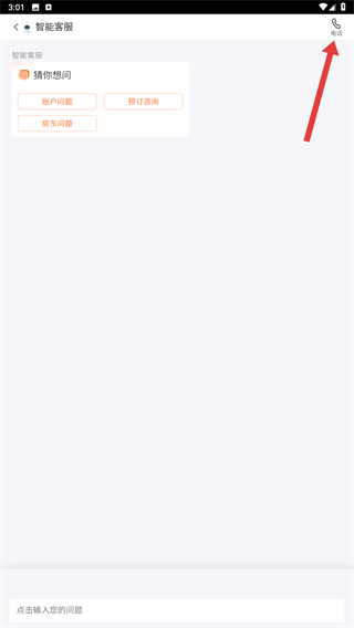3、进入智能客服页面后,点击右上角【电话】选项,就能准备获取客服的具体联系方式啦。