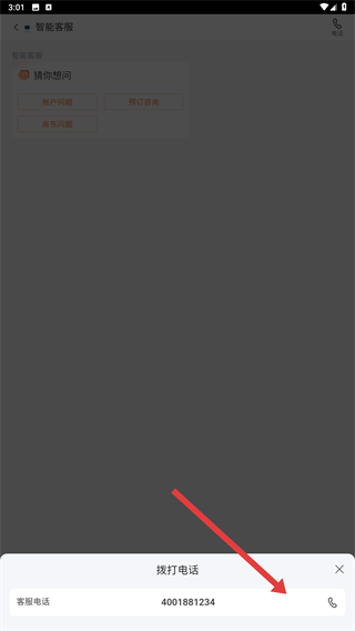 4、点击电话后,即可看到客服电话【4001881234】,若有疑问,拨打这个号码咨询就可以啦。