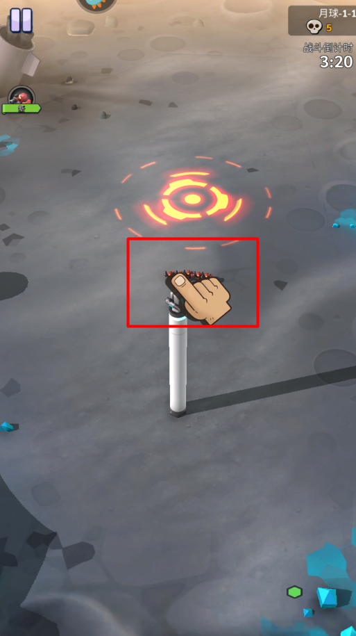 2、在手指的这个位置不停按住鼠标左键,进行攻打敌人
