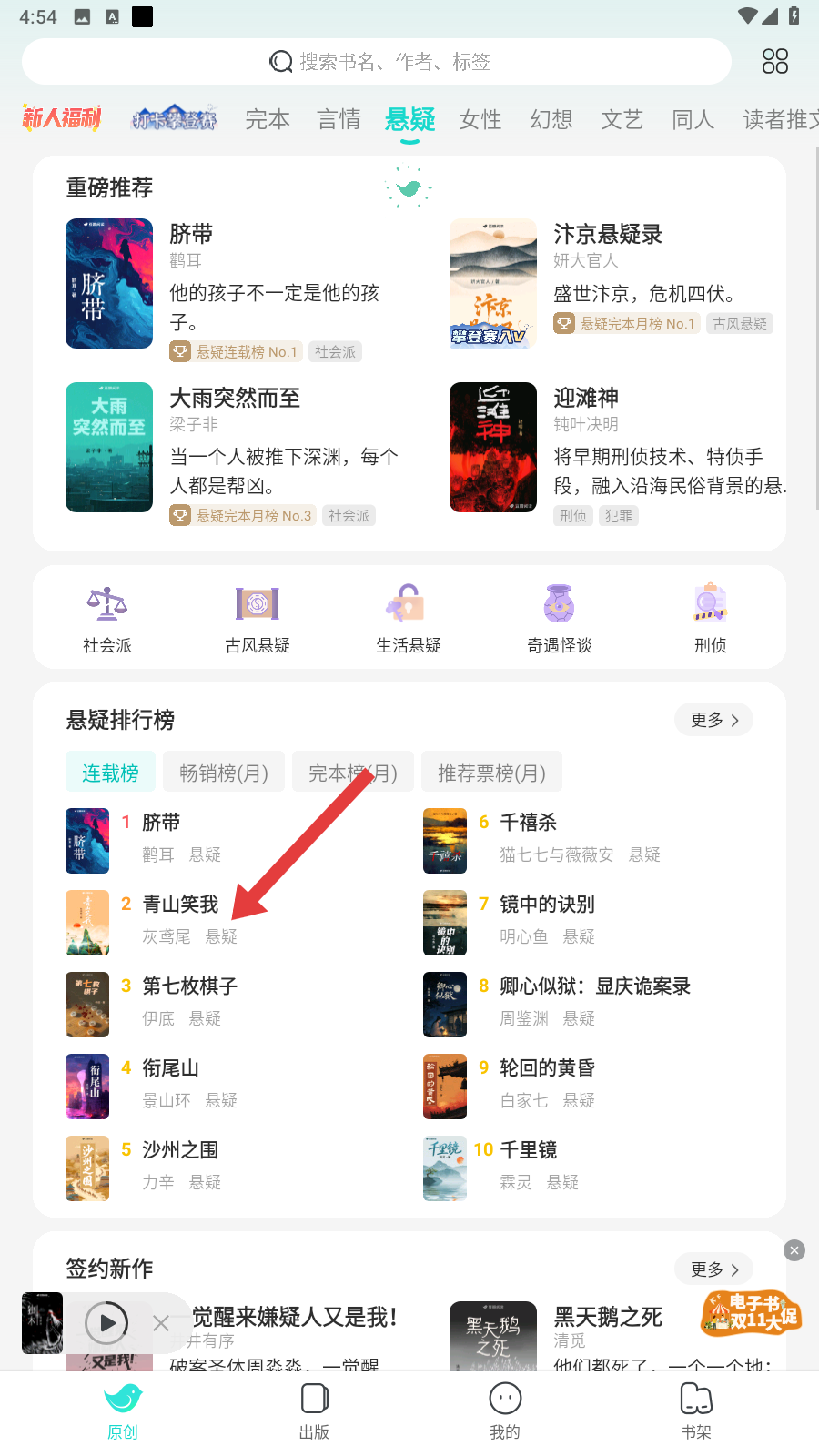 2、在悬疑类书籍列表中,找到并点击【青山笑我】,进入该书的详情页面哦。