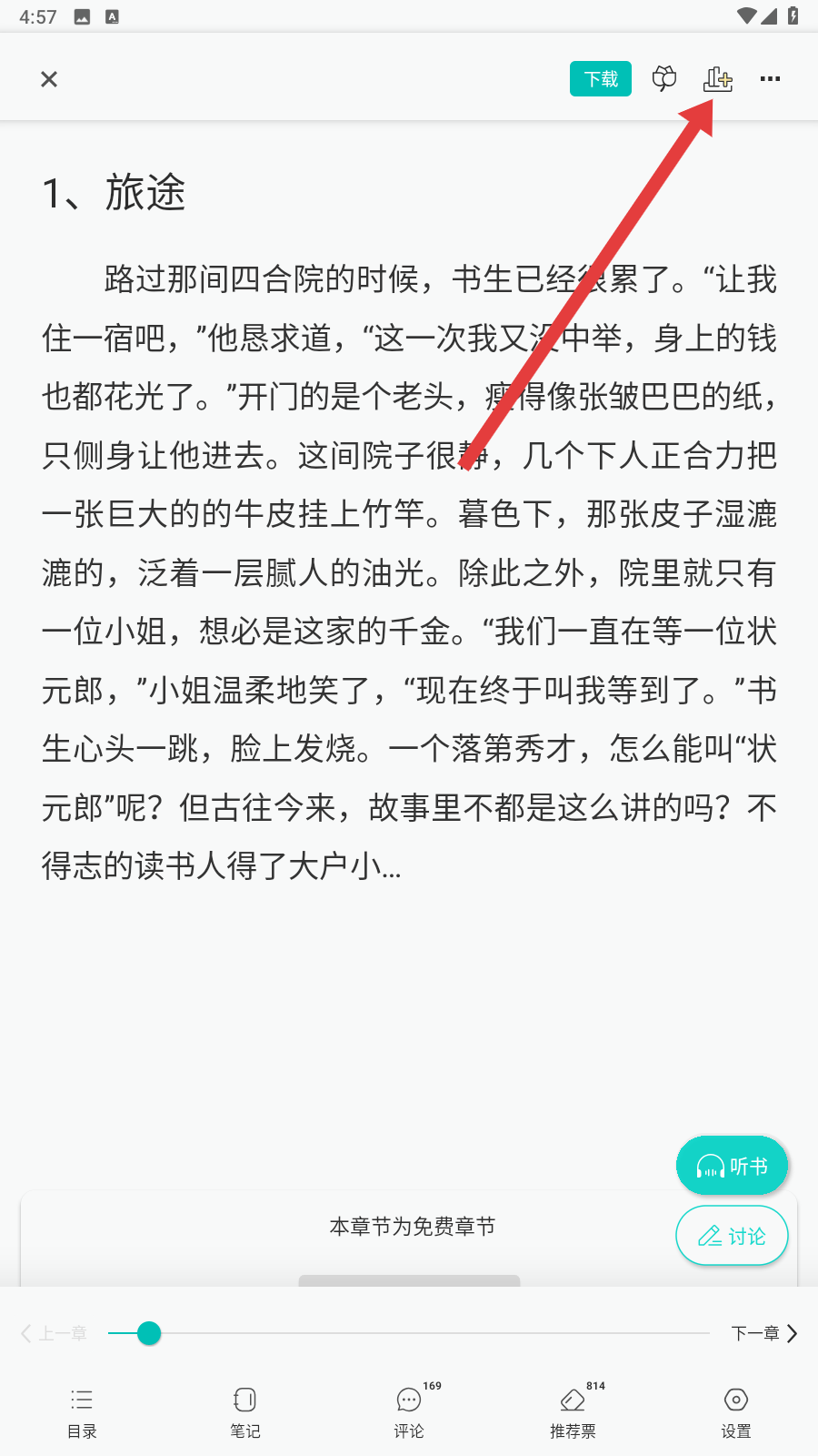 4、之后在阅读界面,可点击右上角按钮,即可加入书架完成操作哟。