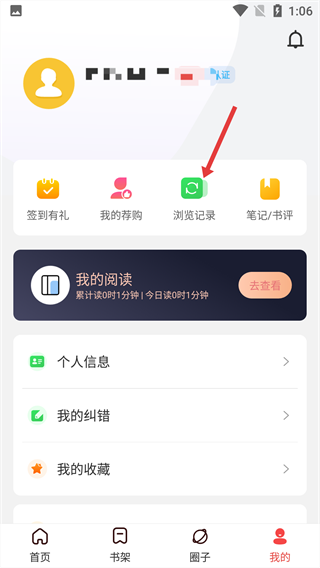 3、进入浏览记录页面,查看并点击目标书籍。