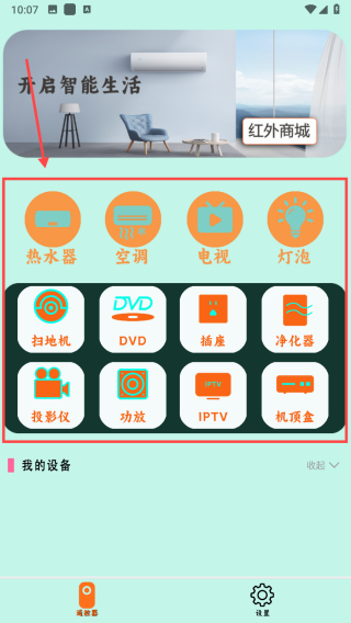 1、打开软件,进入遥控器首页,选择我们需要操作的设备