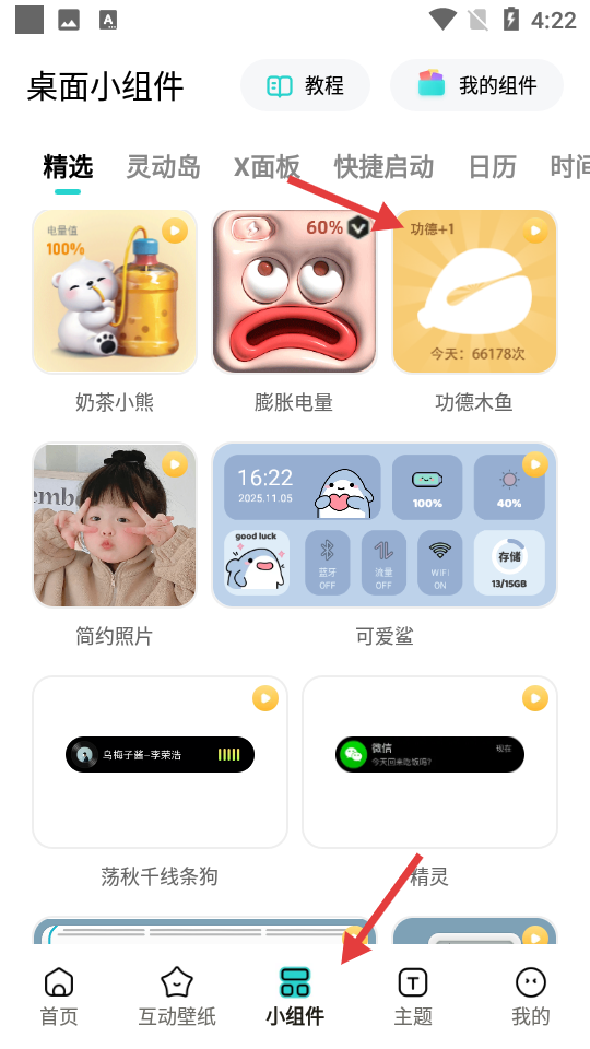 5、小组件栏可挑选自己喜欢的小组件进行设置,不会使用小组件的可查看上面的使用教程,十分便捷