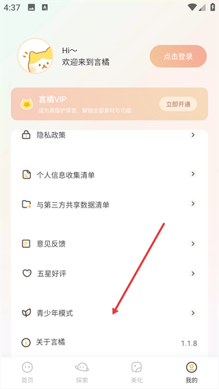 2、在个人中心界面,找到“青少年模式”选项并点击。