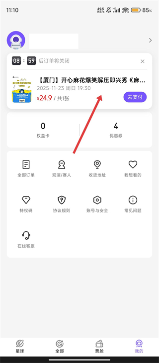 1、打开票星球,点击右下角【我的】,开启取消订单的操作流程,轻松上手哦。