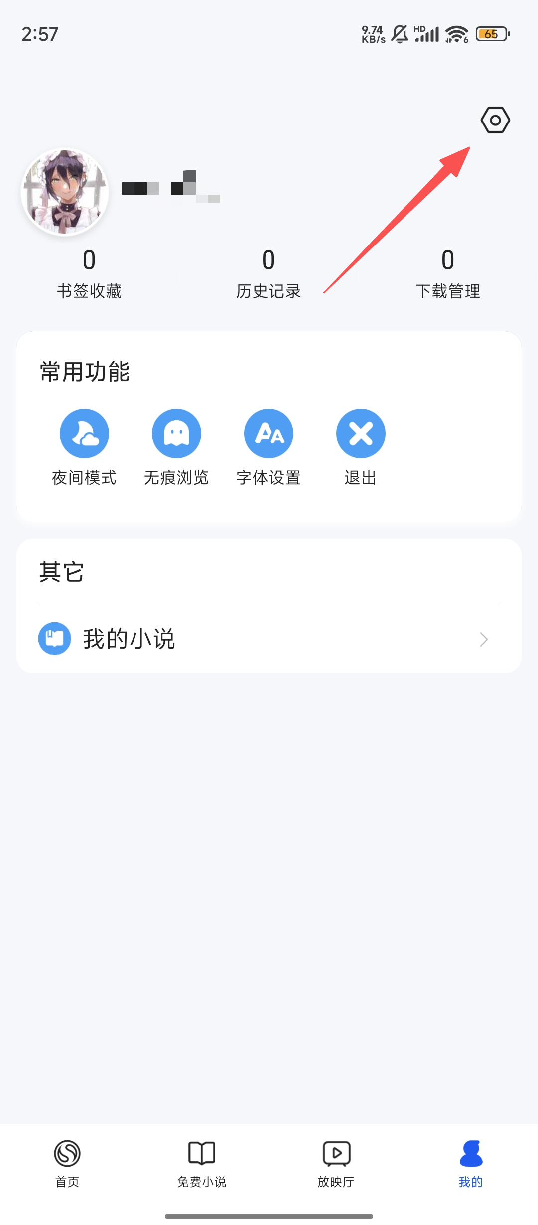 2、在个人页面的右上角,找到并点击【设置】图标,进入设置界面,以便查找字体相关选项哟。