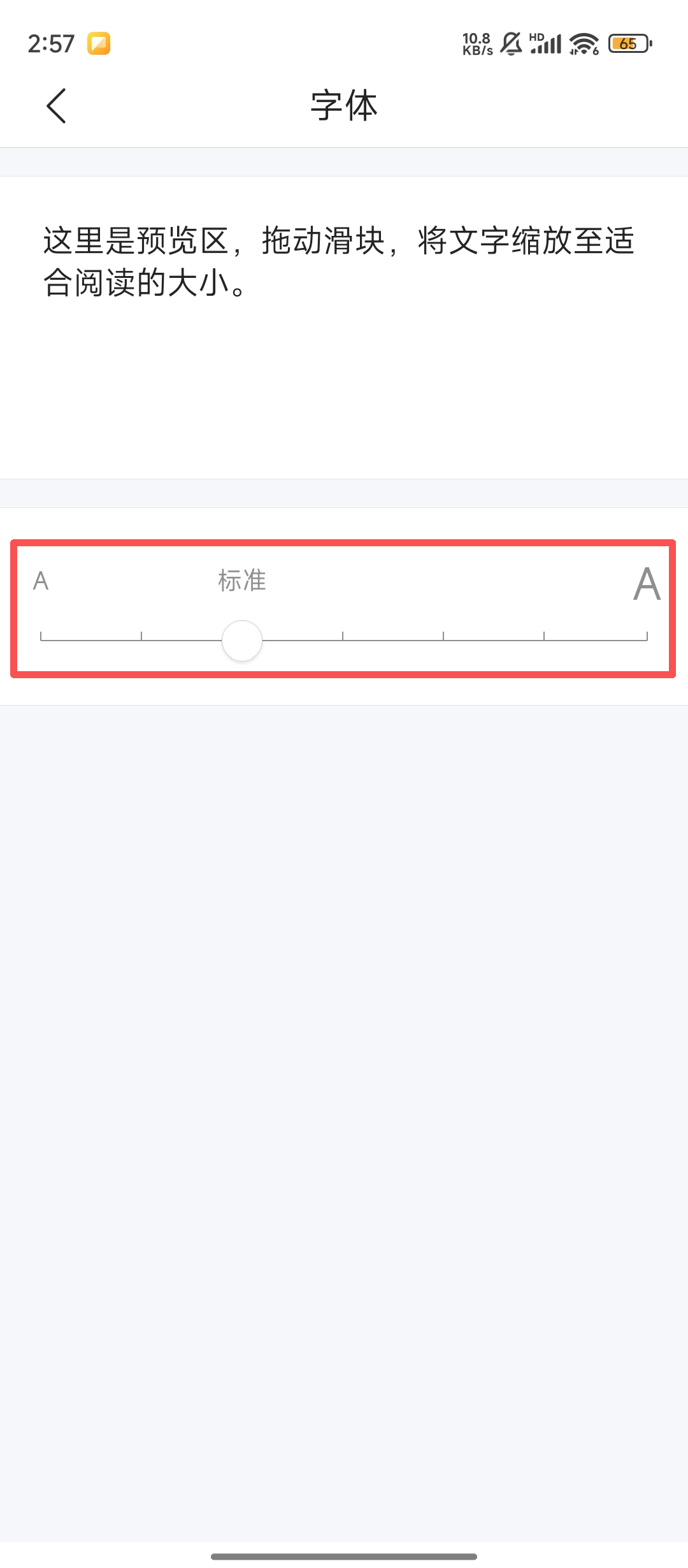 4、在字体页面,拖动带有【A】标识的滑块,便可将文字缩放至适合阅读的大小,轻松又便捷呢。