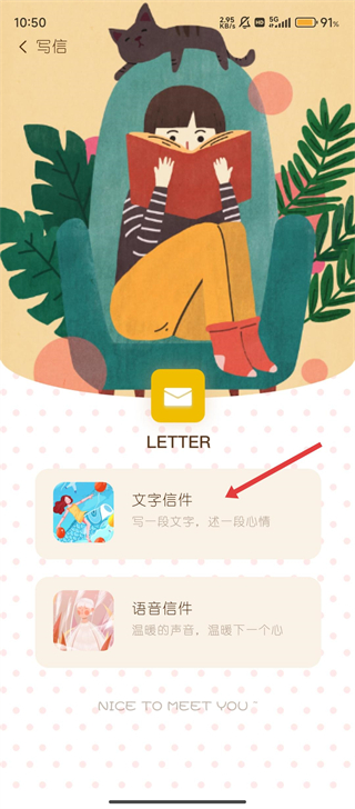 3、进入写信界面后,我们点击【文字信件】选项,就能开始编辑匿名信件内容了呢。
