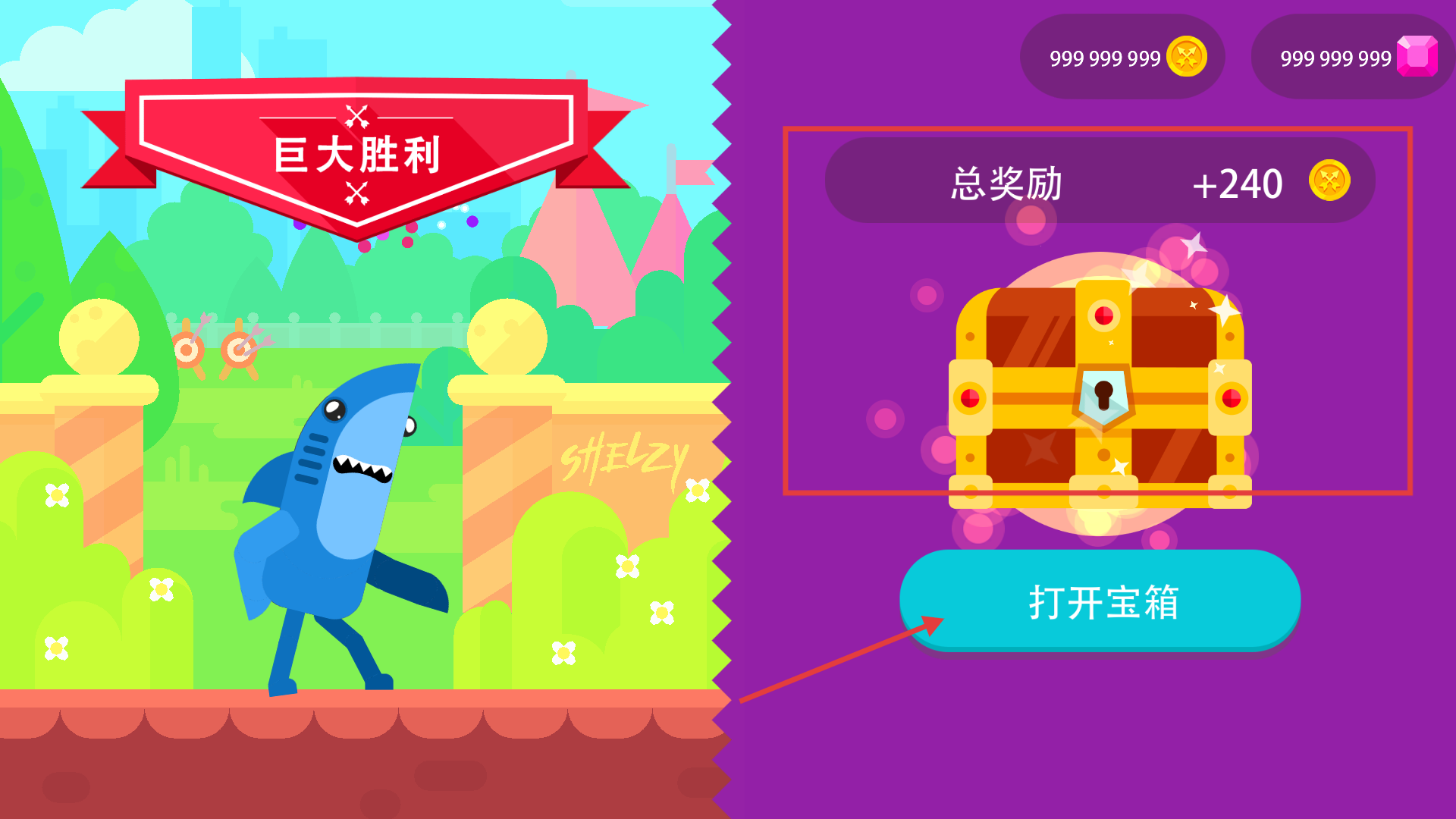 4、获得巨大胜利后点击打开宝箱,领取【240金币】奖励,积累资源提升对战能力。